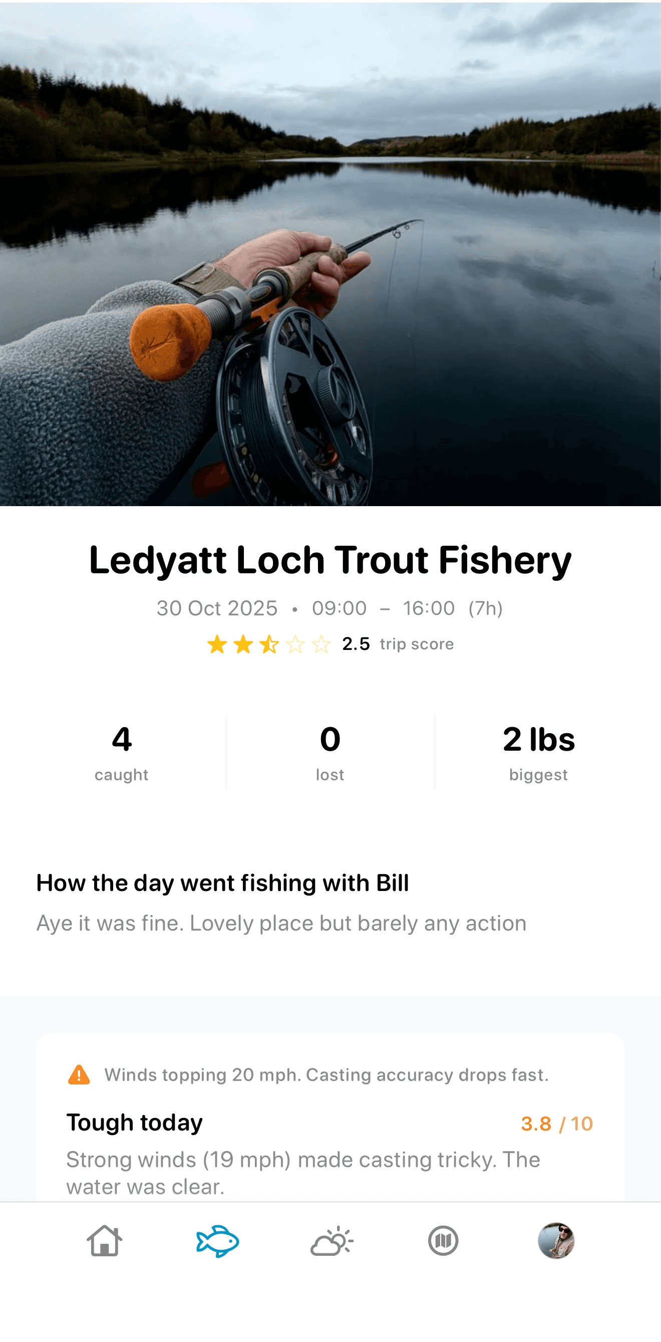 Track your catches, flies and conditions, and uncover the patterns behind your best fishing days